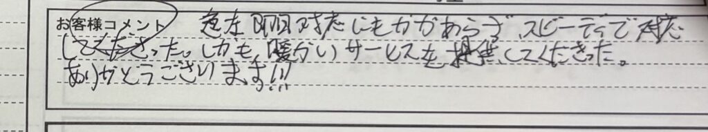 !!お客様より作業に関しましての感謝のコメントを頂戴しております(‘◇’)ゞ!!